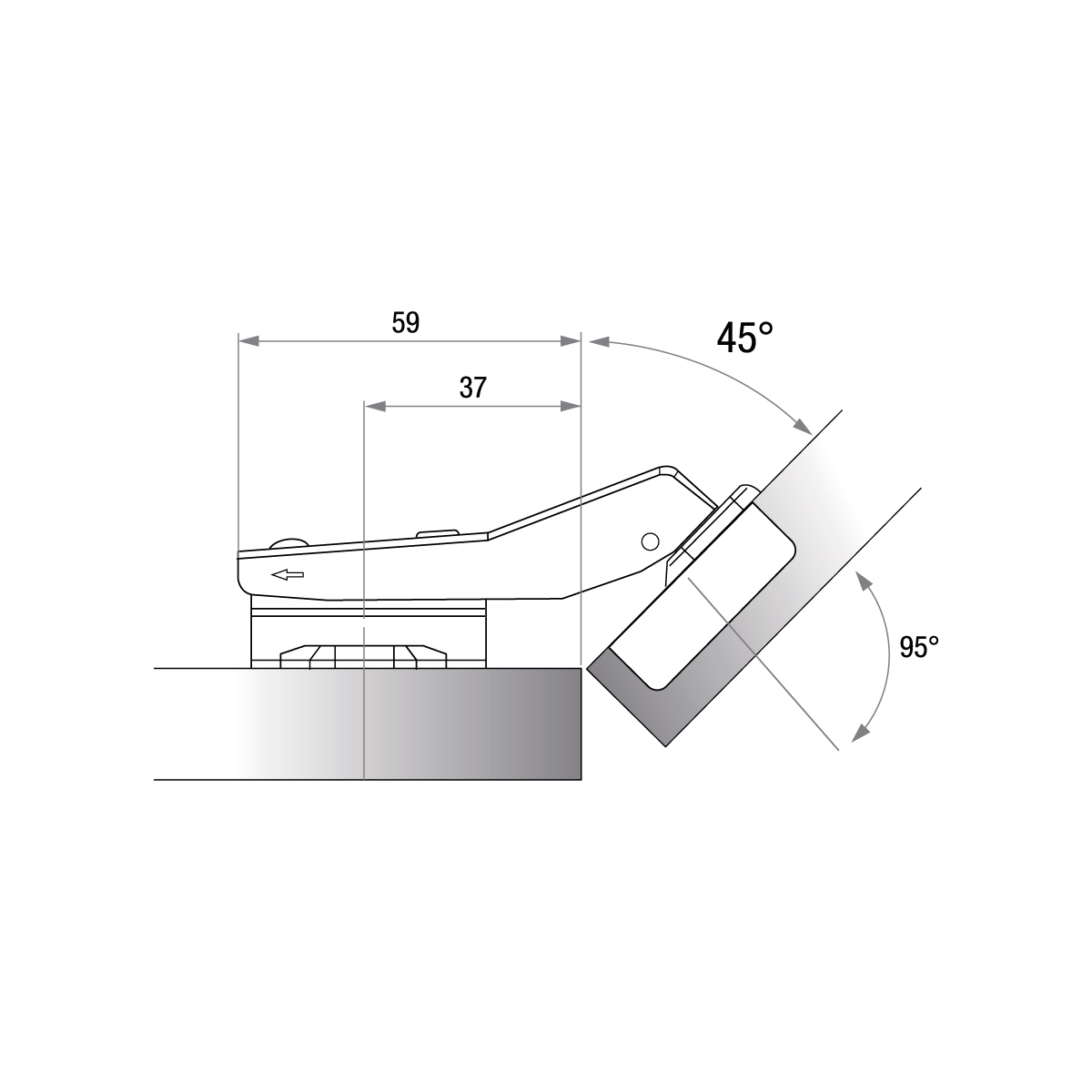 • ÁNGULO de apertura: 45º